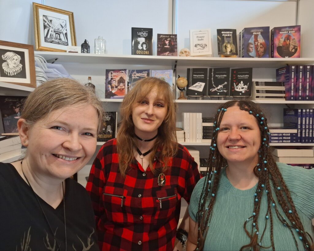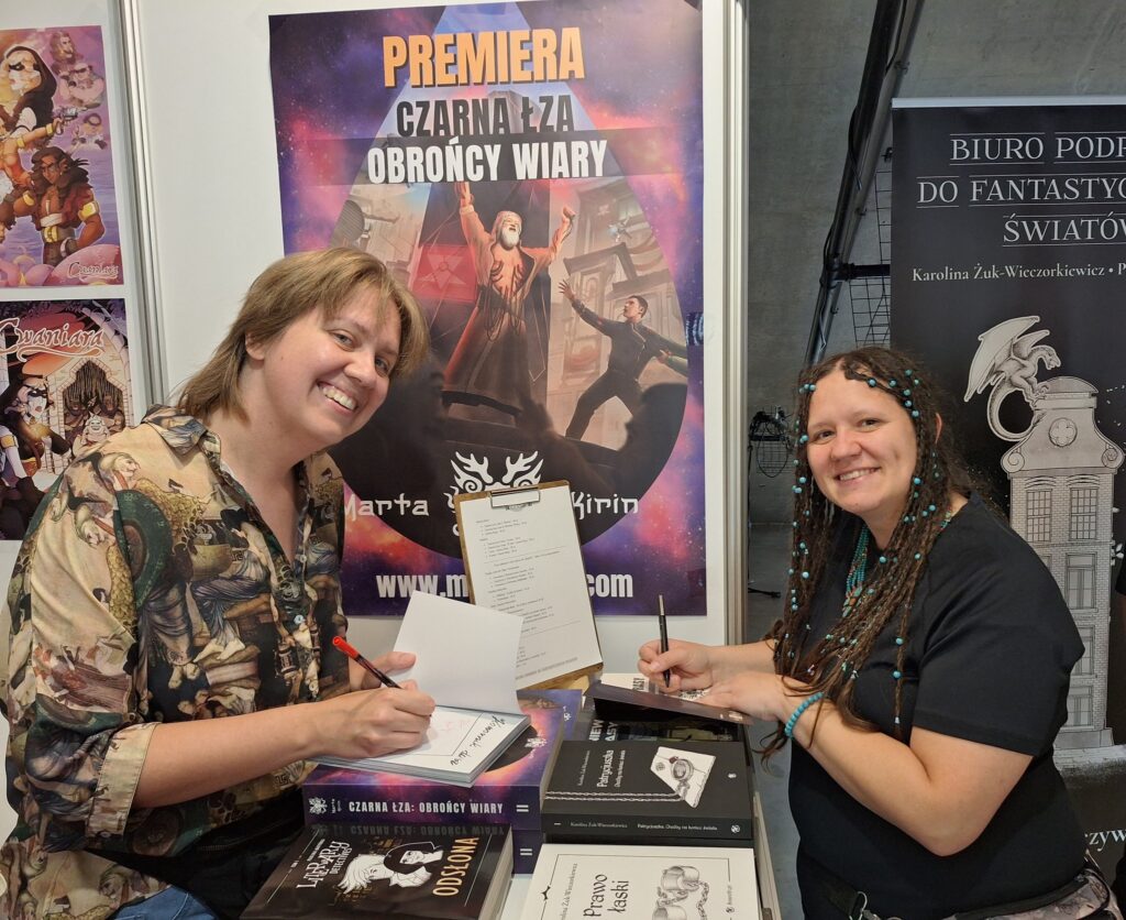 Wspaniale było spotkać się z patronkami i patronami! Odwiedzili nas między innymi: Felicjada, Czytelnicza Norka, Iwona Kwiatkowska, Bookieciarnia, Fantastyczna Karczma (Fantasy, Horror, Sci-Fi), Bogusław Kodlewicz, Izabela Sobańska Pristaj, Books in Blood, Gladys Caraith, Librariada… oraz mnóstwo innych osób, w tym zaprzyjaźnieni wystawcy: Katarzyna Wycisk – Autor, Monika Litwinow, Franciszek M. Piątkowski – pisarz, Radosław Lewandowski i inni.